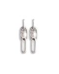 Klassisk feminin stil möter coola länkar i våra nya örhängen Paperclip Links & Pearls. Hängande silverörhängen med ovala länkar och pärlberlocker.