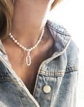 Paperclip Link & Baroque Pearl halsband