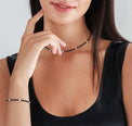 A discreet black pearl necklace that adds cool luxury to your outfit.