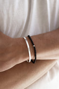 A stylish and useful silver bracelet that is light and comfortable to wear. Great to match with a chain bracelet , stone bracelet or watch.