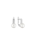 Elegant and stylish pearl earrings with freshwater pearls and chain detail.