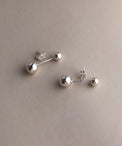 Earrings with rods and balls in different sizes. Turn the rods in the desired position, along the ear or straight down.