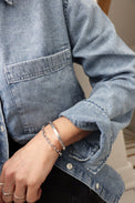 • A stylish silver bracelet that can be matched with many pieces of jewelry.