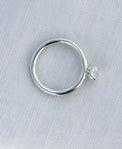 - Silver ring with a 6-prong setting that holds the diamond.