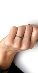 This beautiful wedding and engagement ring set consists of a solitaire ring with a 0.10 ct black diamond and an alliance ring with a band of black diamonds.