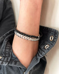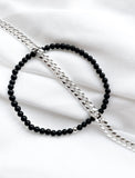 Set of matching bracelets for men. An armor bracelet made of solid silver and a stone bracelet with black onyx stones for men.