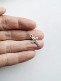 Berlock med litet silverkors som du kan hänga i hoop örhängen med tunna ringar.