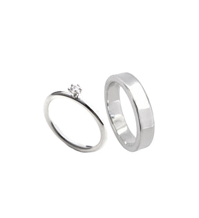 Silver rings in a stylish design with a diamond ring for her and a plain silver ring for the man.